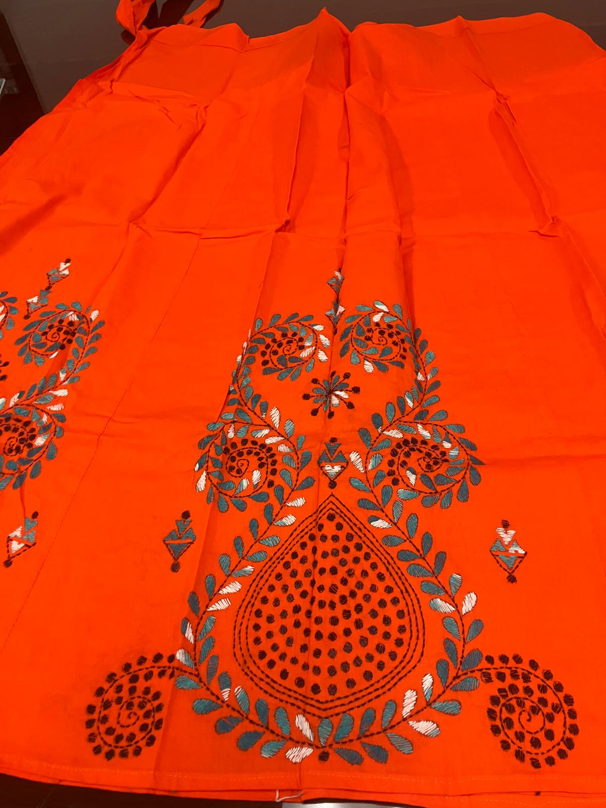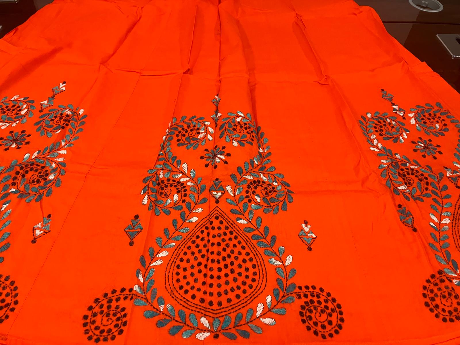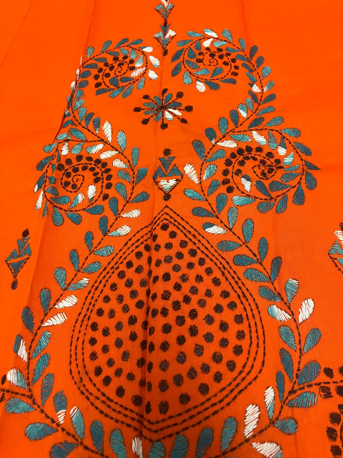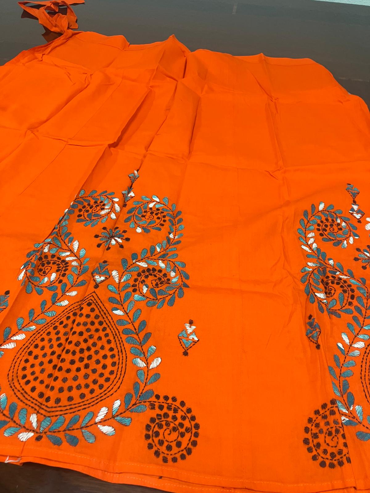 Elegant Orange color kantha stitched Wrapper with multi color kantha work